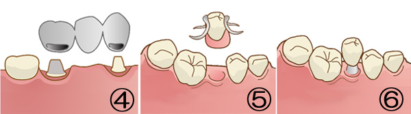 インプラント治療について 1.インプラントとは 2.当院のインプラント治療 1.インプラントとは ■まずはインプラントについて簡単に解説します よく患者さんに「インプラントと差し歯ってどう違うんですか?」と質問されるのでそこからお話をします。 ![]() 上の図を参照してください。 @は天然の歯です。歯は骨に埋まり、歯と骨の間には歯根膜という軟組織がありそのコラーゲン繊維が歯と骨を結びつけています。この絵では白いお髭のように描かれていますが、実際はこんなふうに目に見えるようなものではありません。 Aは差し歯です。神経を取った歯の根に土台となるコア(金属鋳造だったりネジ式だったりグラスファイバーだったりいろいろあります)を差し込み、その上に冠を被せています。虫歯などで歯冠(歯の頭、見えている部分)はなくなっても根っこはまだ残っている状態です。 Bがインプラントです。歯を抜いたあと、骨に人工の歯根を埋め込みそれに冠を被せています。インプラントは骨と直接結合しており歯根膜はありません。 差し歯とインプラントは全く違う治療法です。 つまりインプラントは歯を抜いたりして歯がなくなったところに行われる治療の一つということになります。 ■歯がない場合の治療には次の3つがあります ![]() 上の図は1本歯を失った場合の治療です。 Cはブリッジです。両脇の歯を削って歯のない部分を橋渡した形の人工物をセメントで固定します。この絵では左の歯は差し歯になっており、右の歯は神経のある歯をそのまま削ったようになっています。両脇の歯を削らなければならないという大きなリスクがあります。 Dは入れ歯(義歯)です。両脇の歯に金属の鈎をかけて人工歯を支えています。取り外し式となりますし、鈎が見える欠点があります(保険外では鈎を使わない方法もあり)。 Eがインプラントです。両脇の歯を削らなくてすみますし、取り外し式でもないので自分の歯のような感覚で咬むことができます。骨に人工歯根を埋め込むという手術が必要になります。 CのブリッジとDの入れ歯は保険と保険外の両方がありますが、Eのインプラントはすべて保険外となります。 お値段は一般的には D義歯<Cブリッジ<Eインプラントとなります。 高いお金を払い、自分の体に人工物を埋め込むのですから、良く咬めて、見た目も良く、そして何よりも長持ちするインプラント治療を誰もが望んでいると思います。 その要件としてなくてはならないものに以下のことがあげられます。このほかにもたくさんあげられるとは思いますがこの3つは必要不可欠です。 1)高い診断力と技術を持ったインプラント医 2)信頼できるインプラント材 3)しっかりとしたメンテナンス 当院のインプラント治療へ |