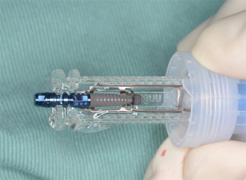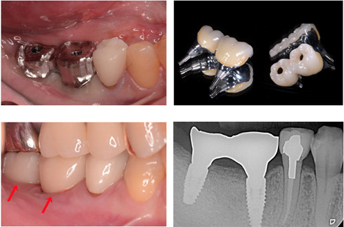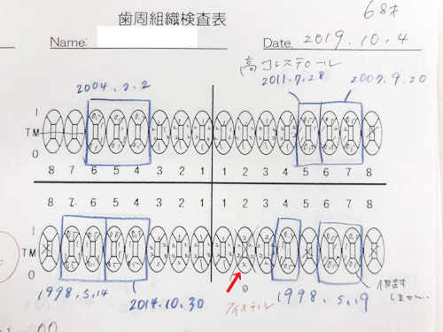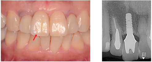 施設長である院長も監修・執筆者として参加しています ![]() 副院長コラムにもUP(2019/12/7) ■術前の準備 ・口腔内診査・パノラマX線写真・デンタルX線写真・CT写真.歯科模型等を用いて綿密に診査を行います。 ・虫歯治療、除石、クリーニングを行い口腔内をできるだけ清潔な状態にします。 ・CT画像をもとに使用インプラントの種類、長さ、太さを選びます。(コンピューターシュミレーションシステム) ・CT画像からサージカルガイドを作成します。(コンピューターガイドシステム) ・全身状態・既往歴も考慮して術式を決定します。 ・患者様に術式や当日の準備など十分に説明を行います。 CTでのシュミレーションの一例です。 ![]() 左上写真は口腔内写真、左上の奥歯がありません 右上写真はパノラマX線写真、上顎洞がかなり下がっているのがわかります 左下CT写真、前から見て上顎洞を避けるようにインプラントサイズを検討します 右下CT写真、横から見ても上顎洞に突き抜けないようインプラントサイズを検討します すべての症例でサージカルガイドを作成しています。(写真は使用済みのもの)サージカルガイドはCTのデータを3D化した手術用のマウスピースです。 ![]() 金属の輪っかがついている部分がインプラントを埋入する部分です。 インプラントを埋入する位置、方向、長さがCTデータをもとにガイドされています。 ■インプラント埋入手術 手術は木曜日の午前中に行っています。 術者は院長、第1助手は日本インプラント学会専修医の森下歯科医師または副院長、第2助手(機械出し)は当院の日本口腔インプラント学会認定歯科衛生士が務めます。以下歯科衛生士の第3助手、生体モニター記録係の5名が通常のスタイルですが、鎮静法を併用する場合は麻酔医を依頼することもあります。 インプラントを骨に埋入したあとはインプラントが見えないよう歯肉をもどして縫合します。糸は一週間後に抜糸しますが、そのまま3〜6ヶ月インプラントが骨と結合するのを待ちます。そののち、歯肉を開けてインプラントを見えるようにします。(これが二次手術)その上に支台(アバットメント)を装着し人工歯を被せます。 ここからは実際の症例です。 副院長コラムに2019/12/5の手術風景をUPしました。 この日の手術は下の前歯1本を埋入する手術でした。 こちらは術前のパノラマX線写真。矢印のところに歯がありません。 ![]() ごらんの通り、もう既に13本インプラントをしているかたです。 これは今回の手術の2ヶ月前の歯周組織検査表 ![]() 赤い矢印の歯、左下2番の前歯ですが、フィステル(瘻孔)とあります。根尖病巣があり、もう治療しても治る見込みのない状態でしたのでこのあと抜歯しました。 青く囲んだ部分がインプラントです。一番古いものは1998年ですからもう21年もたっていますが、何ら問題なく機能しています。 術中写真です。最初の細いドリルでサージカルガイドを使って骨に穴を開けているところです。 ![]() 使用したのはストローマン社の直径2.9mm長さ10mmのインプラント コンピューターシュミレーションシステムによりこれを選択しました。 ![]() 埋入しました、骨幅狭いです。 ![]() 縫合してオペ終了です ![]() インプラントに人工歯を装着するまでここには義歯を装着して過ごしてもらいます。 ![]() 手術直後のパノラマX線写真です。下の前歯に1本インプラントが増えています。 ![]() 治療の流れは以下のようになります。 インプラント埋入手術(一次手術) ↓ 3〜6ヶ月 歯肉を開けて支台(アバットメント)を装着(二次手術) ↓ 人工歯を装着 ↓ メンテナンス ■使用インプラント 現在はストローマンインプラントのみを使用しています。 世界最高の品質そして世界No.1のシェアを誇るインプラントです。 インプラント周囲炎が起こりにくく、当院でのインプラント10年生存率は99%以上です。 ストローマン社と他社との違いは徹底した学術主義であるということです。発表されるデータはクリニックの先生や大学の教官達からなる、グローバルな非営利学術組織ITI(International Team of Implantology)から提出されています。ストローマン社にとって有利とか不利とか関係ない、使っている先生方の中立のデータが豊富なのです。当院の院長もITIフェローとして参加しています。 ![]() 院長はITIスタディクラブのデレクターとしても活動しています。 2019/12/2副院長コラムに掲載 ■術後メンテナンス 術後はずっと可能な限りメンテナンスします。 術後のメンテナンスを十分に行わなければ、インプラント周囲炎などのトラブルが発生することがあります。インプラントだけででなく、口腔内全体の清掃をしっかりと行い、インプラント周囲炎を予防することが大切です。天然歯の歯周病管理も重要ですのでインプラントの管理と同時に行います。天然歯の歯周病管理は保険診療となります。 インプラントの上に装着する人工歯(上部構造)については、天然歯の詰め物・被せ物と同様に欠けたり外れたりすることがありますので、修理